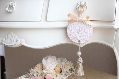 レースのアロマストーンにタッセルをつけてオブジェを作ってみました。