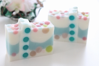 手作り石けん講座の合間に作りました。水玉を思い通りに並べることができました。