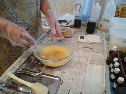 1日目はやぎの乳を入れた石けん、カレンデュラ石けん、