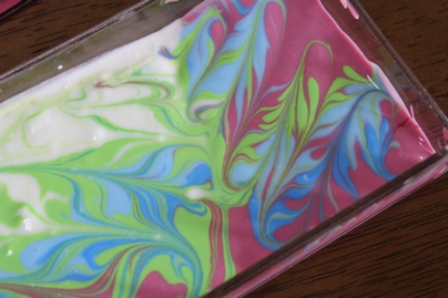 実際の石けんを作るのではなくヨーグルトに色をつけて試してみます。