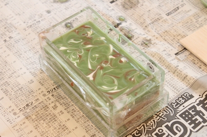ゼブラ石けんの模様を作ったあとにハンガーを出し入れします。